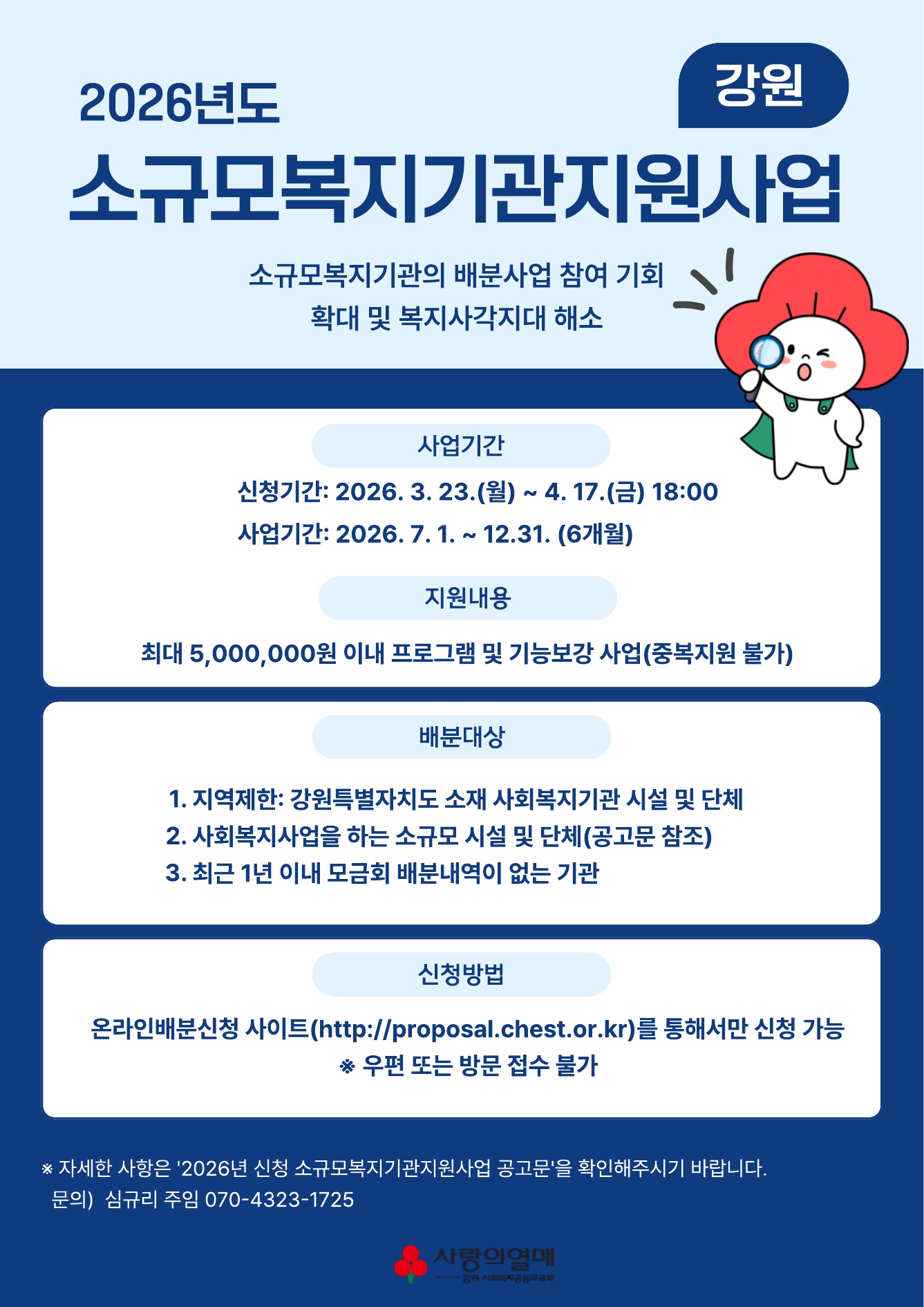 2026년 강원공동모금회 소규모복지기관지원사업 안