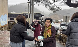 [사례관리 및 지역사회돌봄] 노인맞춤돌봄서비스 홍천읍 어르신께 '팥죽과 막장' 전달