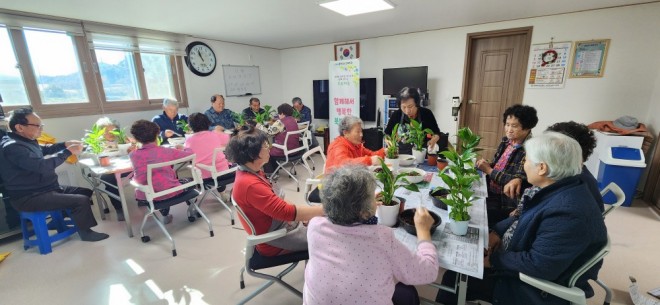 3. 내 용 : 북방면 소재 경로당이용 어르신 각 15명을 대상으로 북방살이 프로그램 14~15회기를 진행하였습니다. 프로그램 참여 어르신들에게 노인복지관의 주요 서비스와 이용방법을 안내하였습니다. 또한, 원예활동을 통해 생태환경에 관심을 가져보는 시간을 가졌습니다. 감사합니다.