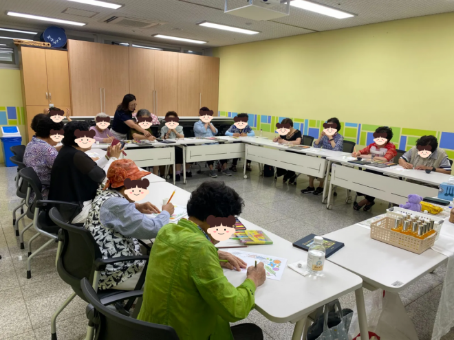 3. 내 용 : 2025년 함께더보기 프로그램의 평가회를 진행하였습니다! 3월부터 진행된 함께더보기가 흥미롭고 재미있었던 만큼 시간도 훌쩍 지나가버린 것 같은데요! 평가회 진행 전에는 아로마오일 향기 맡기, 채색하기, 물파스와 스킨미스트 챙겨가기 등 짧은 시간 안에 많은 활동을 해보았습니다 :) 약 6개월 동안 높은 참여율과 적극적인 모습을 보여주신 어르신들 모두 감사합니다! 참여해주신 어르신들 모두 고생하셨습니다 ~