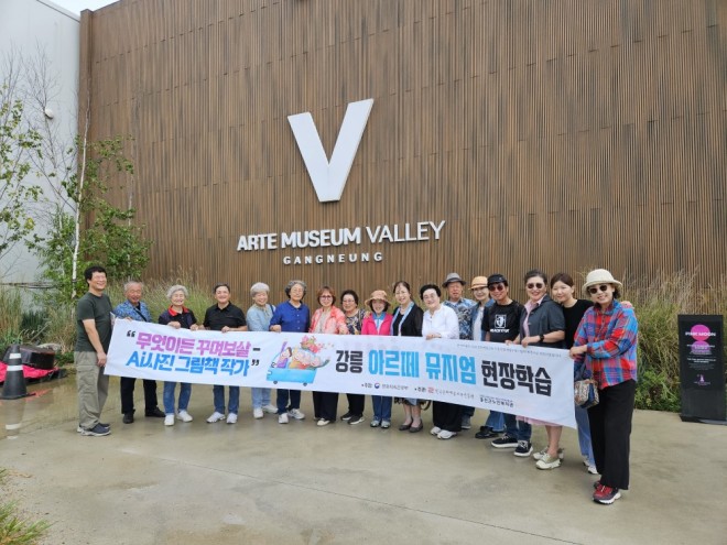3. 내 용 : 문화예술교육 지원사업으로 ‘나는 AI 사진 그림책 작가다’ 참여자 15명과 함께 강릉 아르떼뮤지엄을 방문하여 현장학습을 진행하였습니다.