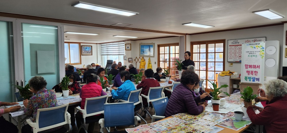 3. 내 용 : 북방면 소재 경로당이용 어르신 각 15명을 대상으로 북방살이 프로그램 16회기를 진행하였습니다. 프로그램 참여 어르신들에게 노인복지관의 주요 서비스와 이용방법을 안내하였습니다. 또한, 원예활동을 통해 생태환경에 관심을 가져보는 시간을 가졌습니다. 감사합니다.